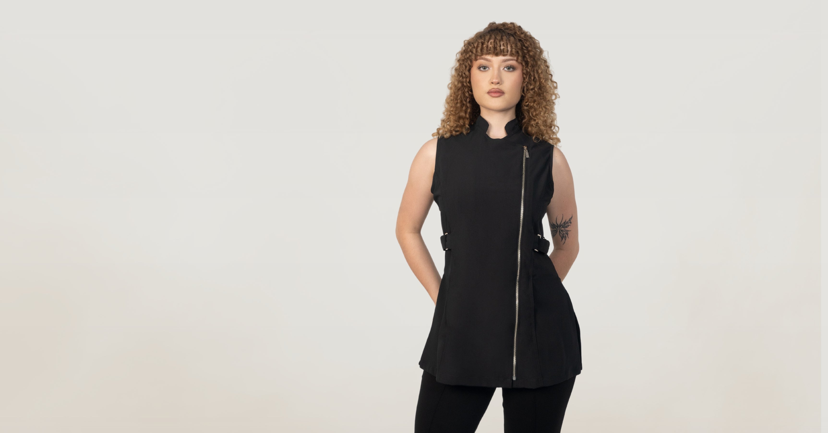 Vests inspired by hairstylists and makeup artists, designed with style and function for anyone to wear.